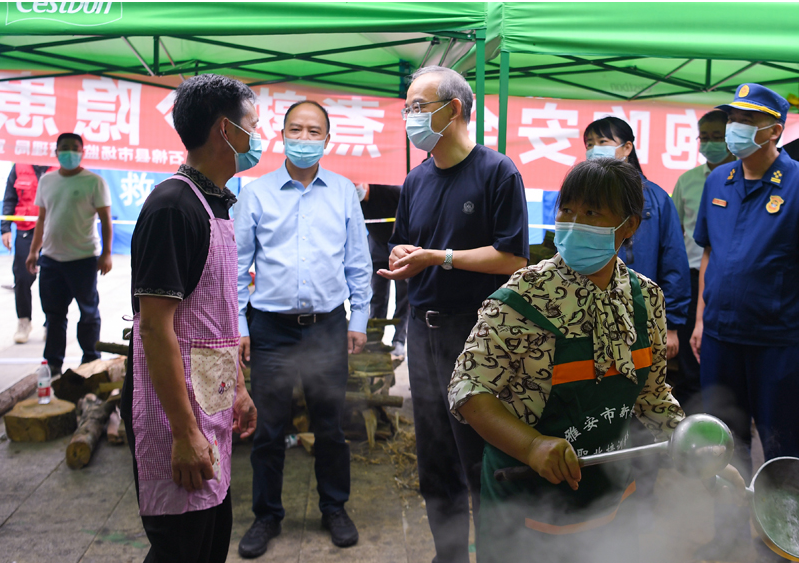 黄强走进七里坝应急避险安置点安置帐篷、医疗卫生防疫点、厨房等地,看望慰问受灾群众,询问群众基本生活保障情况。