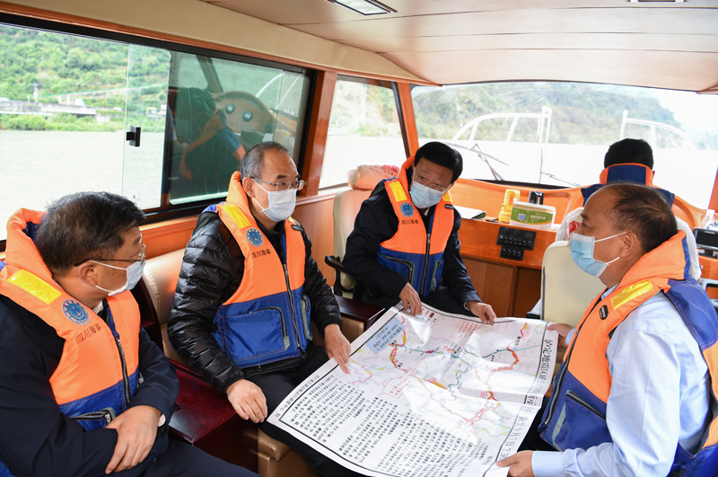 9月8日,省委副书记、省长黄强从新民乡码头乘船沿着大渡河前往王岗坪乡,沿途察看山体崩塌和道路损毁情况,听取震区区域公路网抢通保通工作打算介绍。