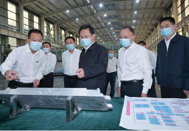 9月13日,省委书记王晓晖到广元经开区中孚铝业公司调研,走进生产车间,观看产品展示,察看安全生产、环保措施落实等情况。