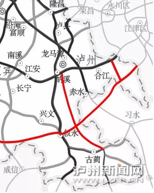 渝叙筠、泸古高速示意图