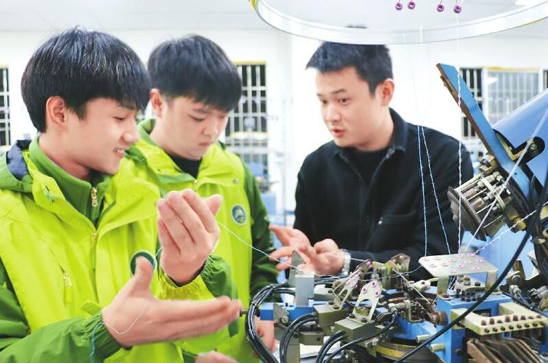 浙江省诸暨袜机技师(右一)到沐川职中授课。受访者供图