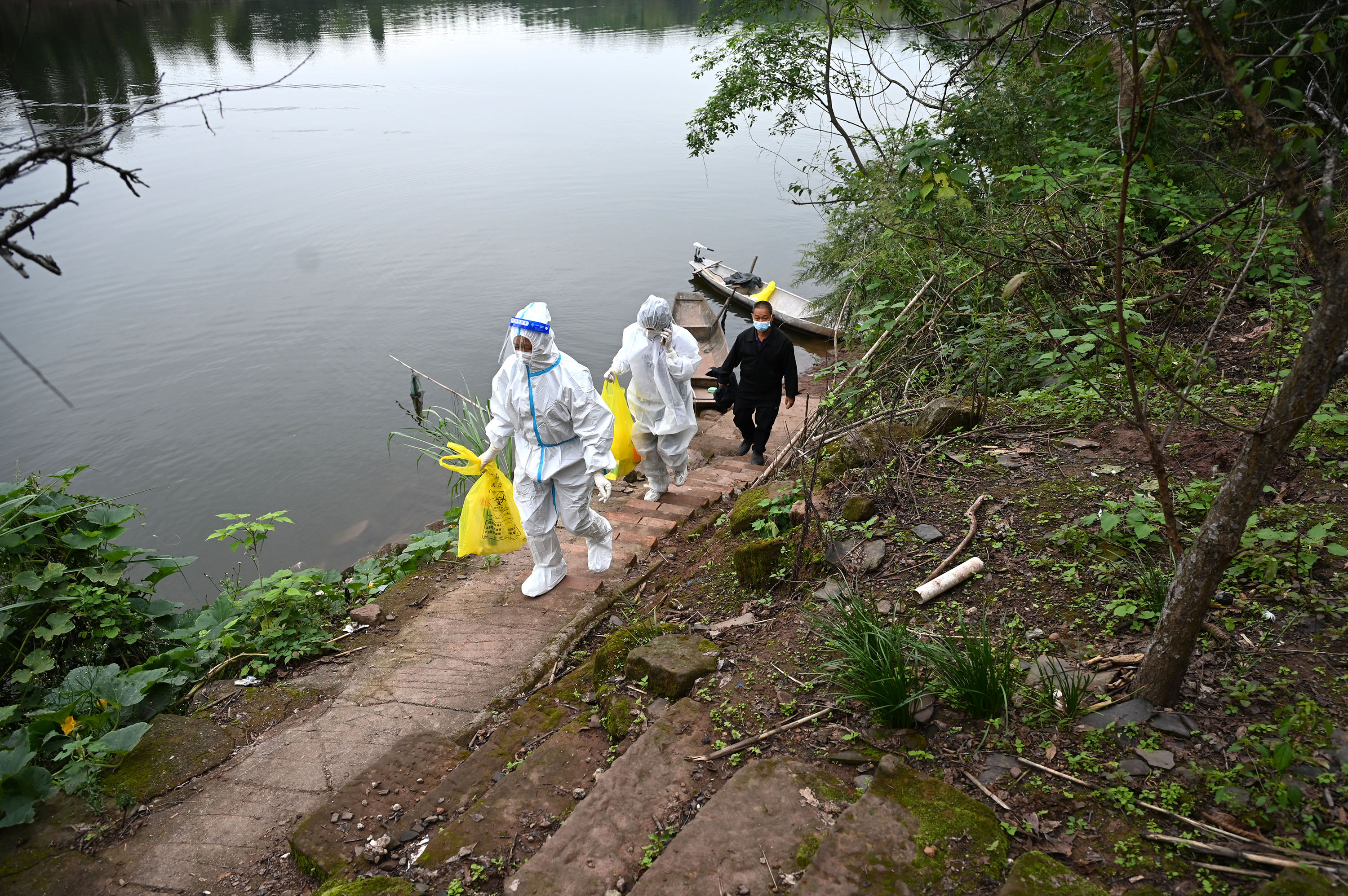 核酸采样小分队奔忙在库区之间,为居民提供核酸采样服务