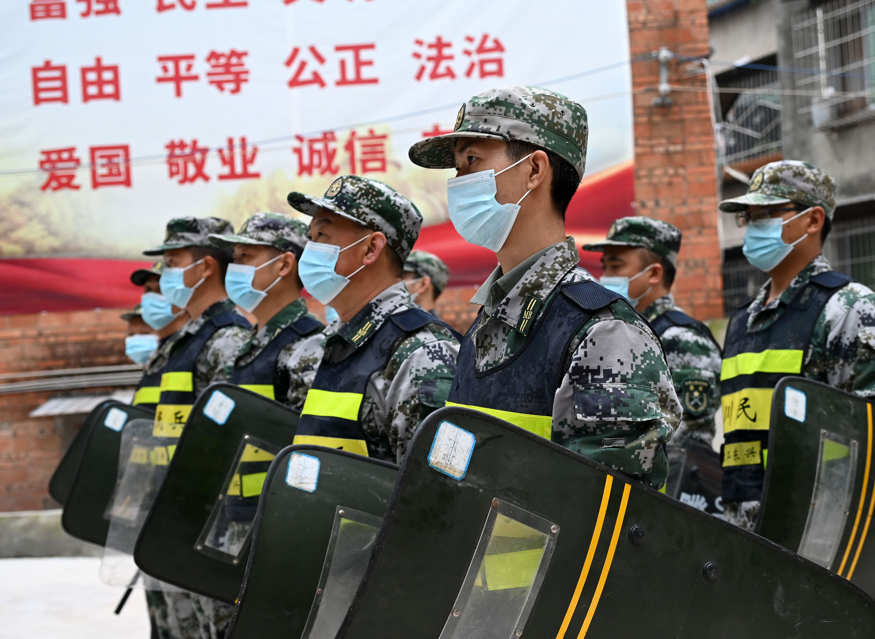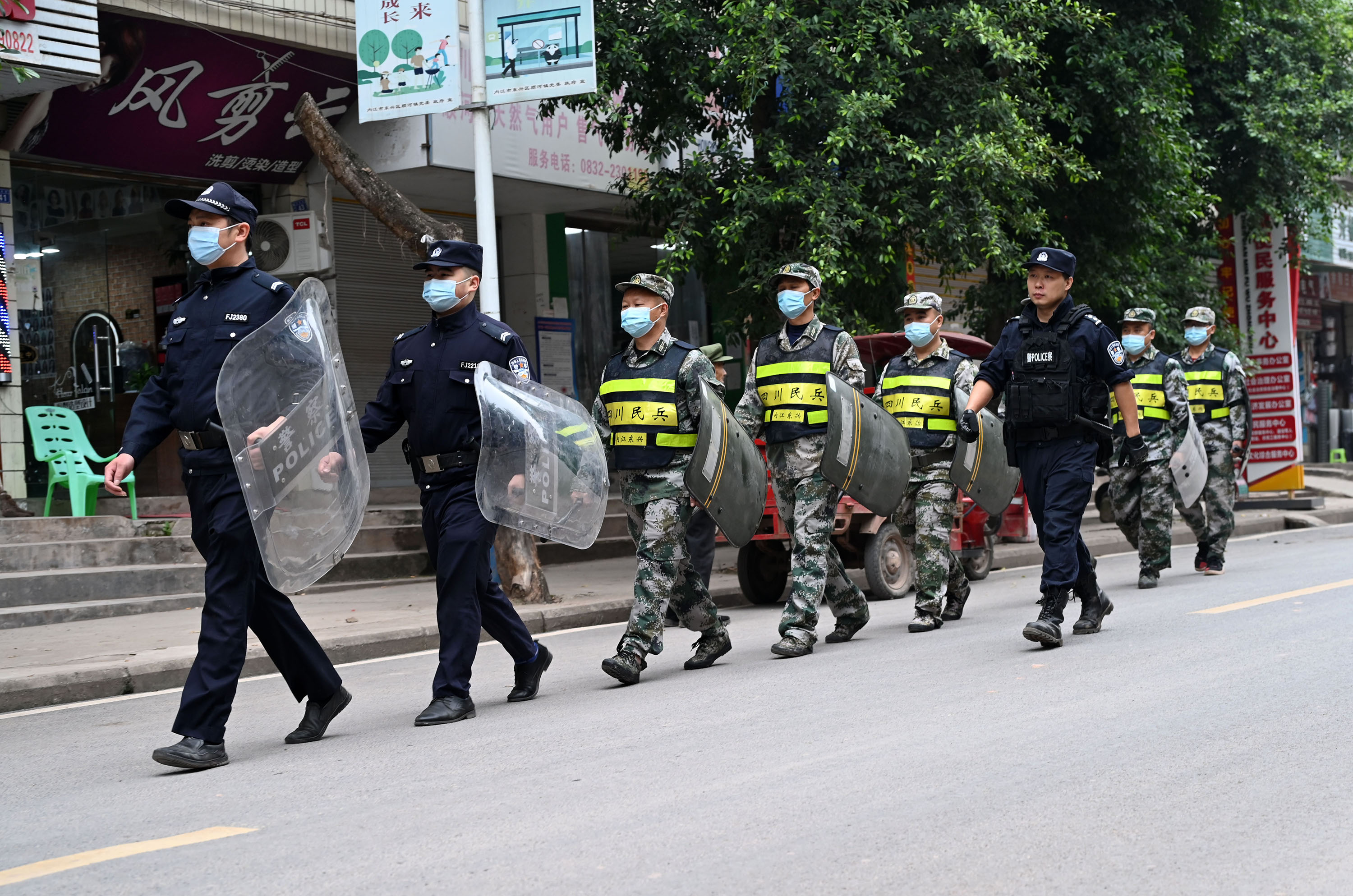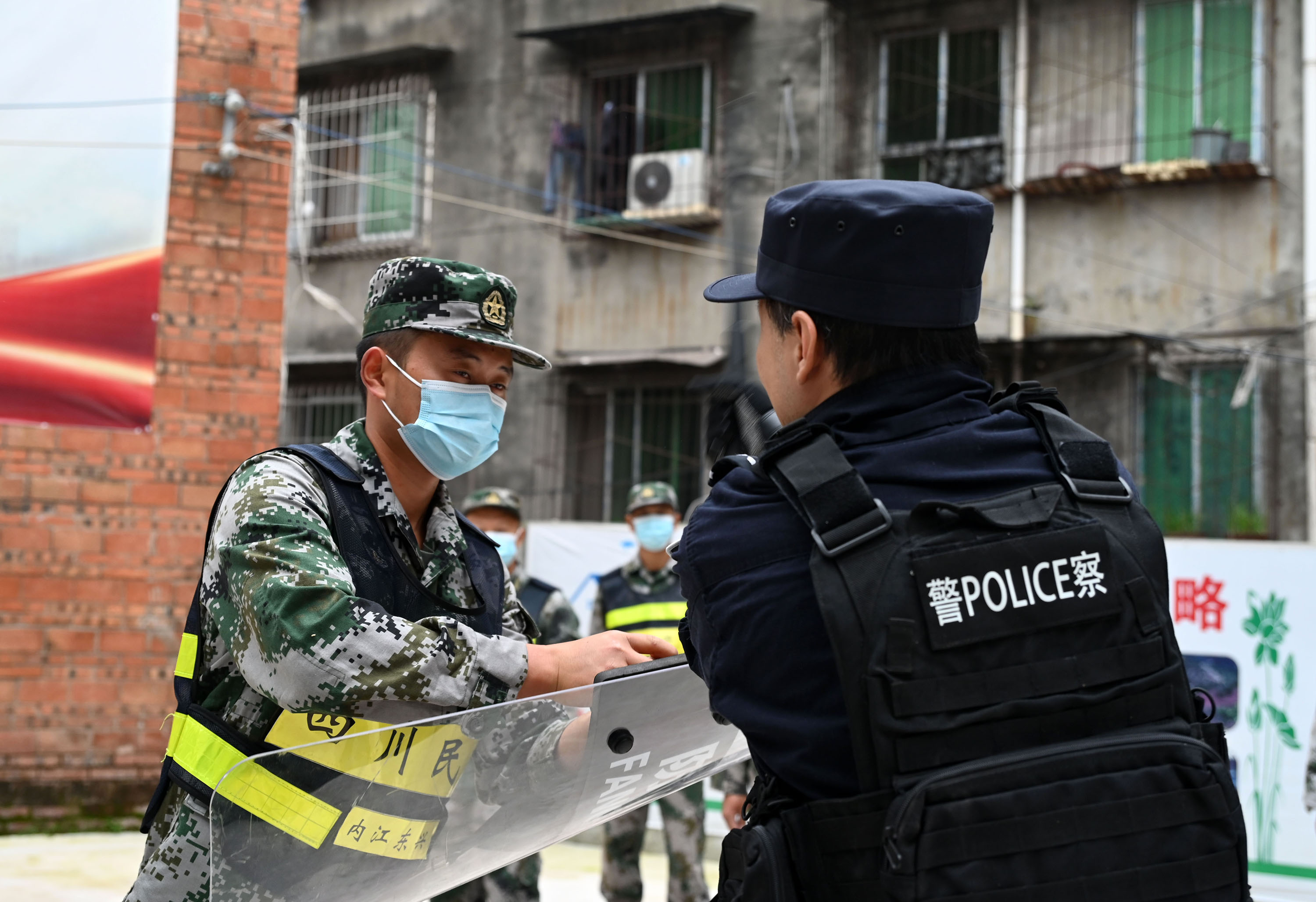 10月13日,在省内江市东兴区顺河镇天宫社区,武装巡逻出现在街头,成为一道亮丽的风景线。