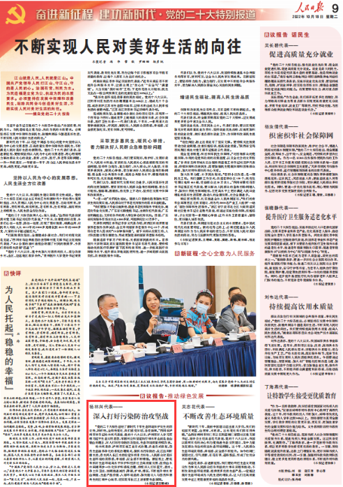 10月18日,人民日报《议报告·推动绿色发展》刊发采访党的二十大代表、泸州市委书记杨林兴报道《杨林兴代表——深入打好污染防治攻坚战》。