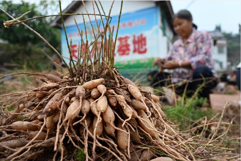 10月23日,内江市东兴区郭北镇青台村,农业工人正在采收天冬,为天冬产业扩种提速提供种源。