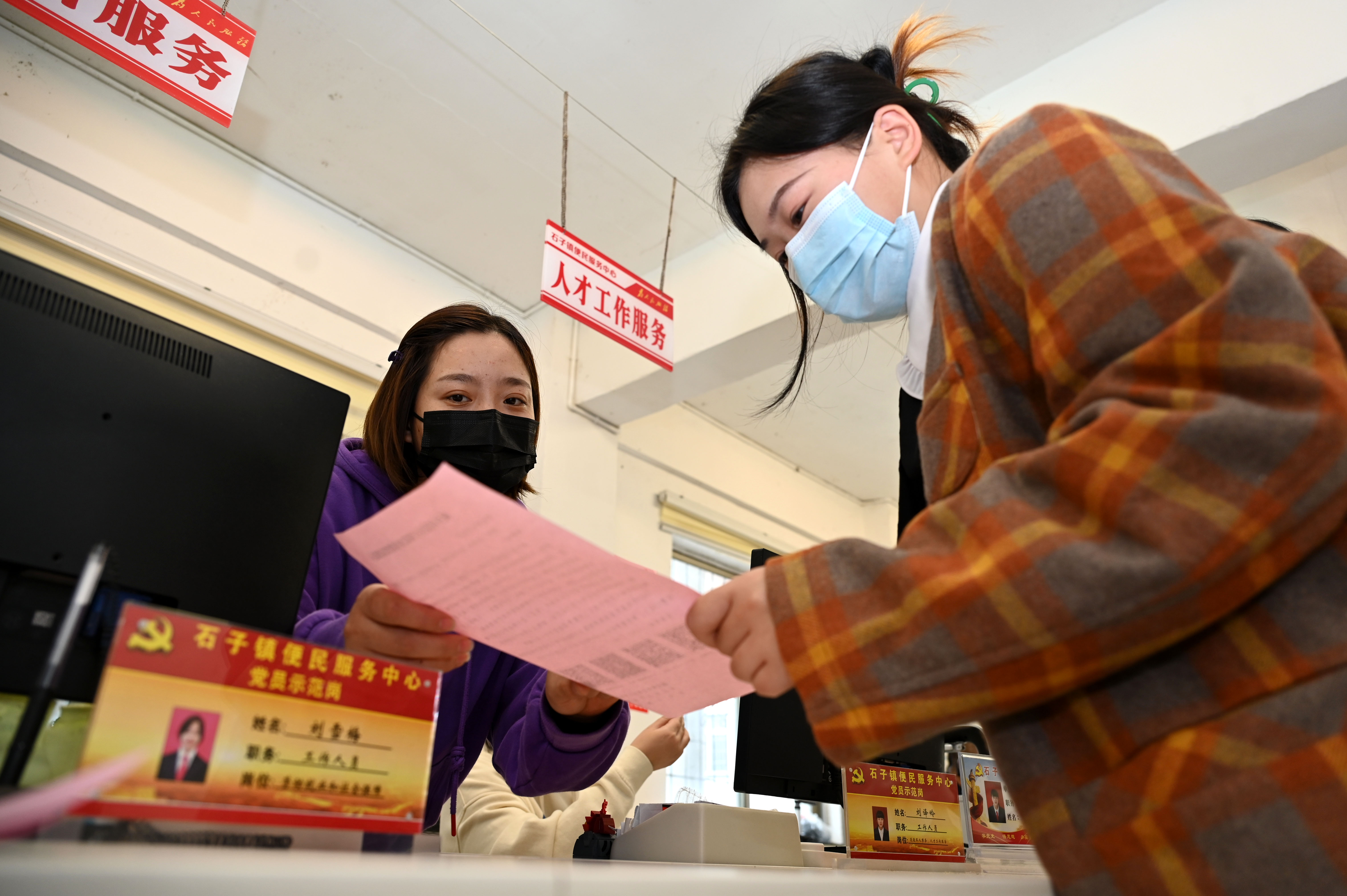 工作人员为群众提供办事指导