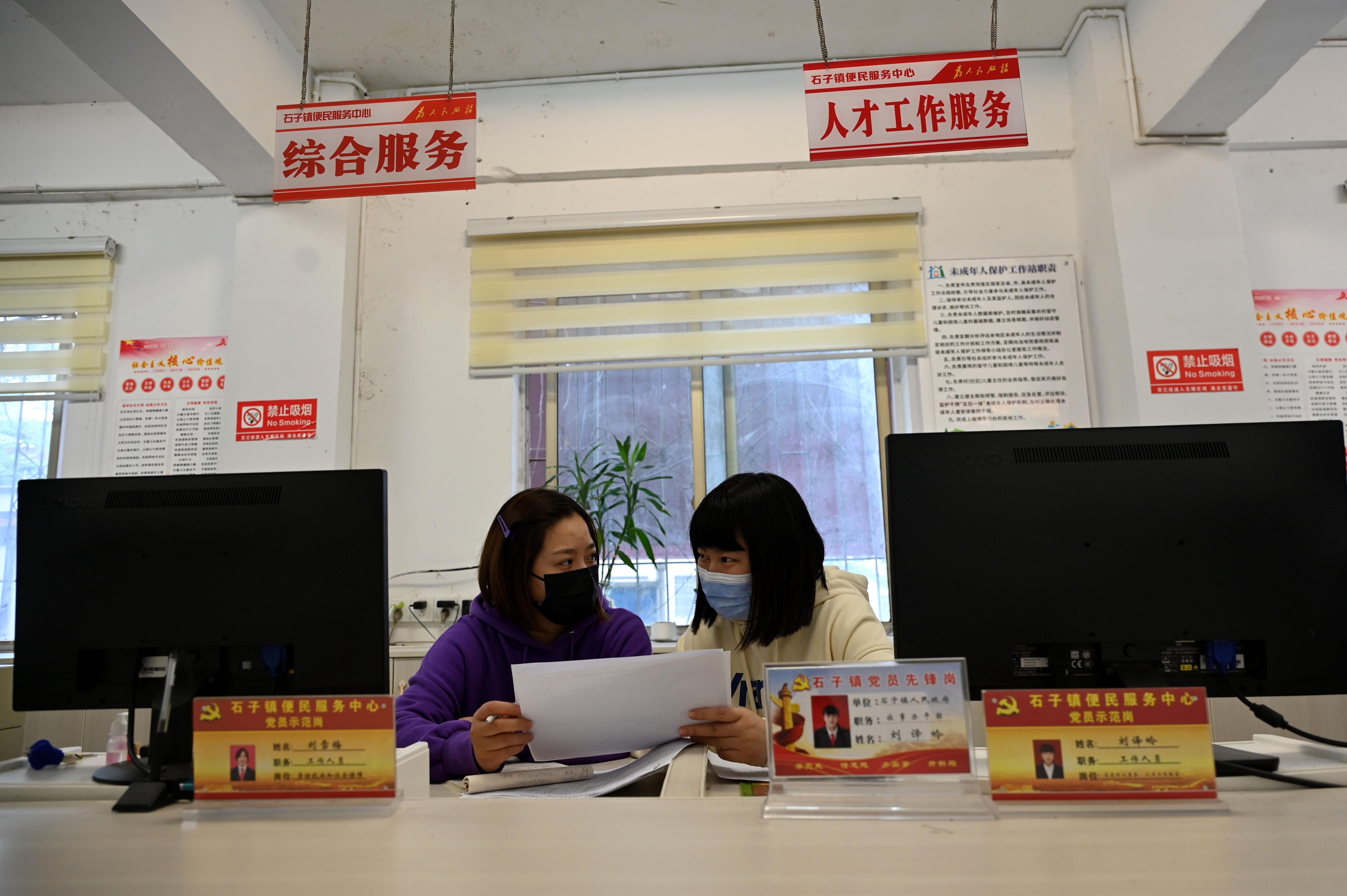 10月28日,四川省内江市东兴区石子镇便民服务中心,工作人员热情为群众办事。