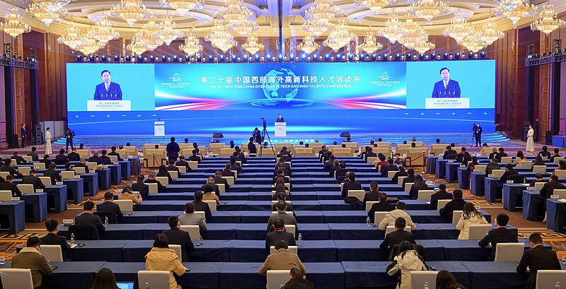 12月10日上午,以“萃集国际英才·共享全球智慧”为主题的第二十届中国西部海外高新科技人才洽谈会(以下简称“海科会”)开幕式暨天府论坛在成都举行。全国人大常委会副委员长、九三学社中央主席武维华视频讲话。省委书记王晓晖出席开幕式并致辞,中央统战部副部长、国务院侨办主任陈旭视频致辞。省委副书记、省长黄强出席。