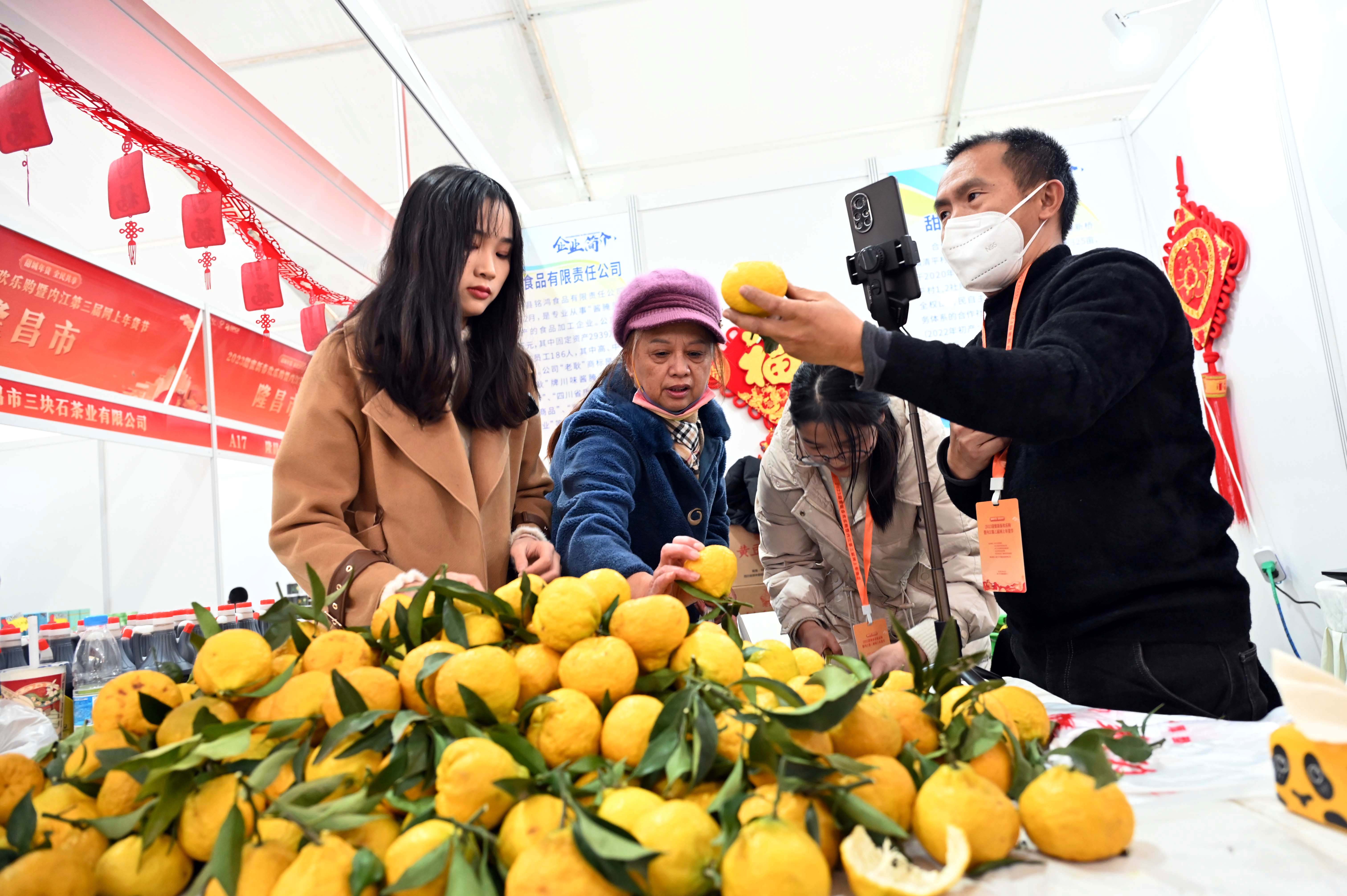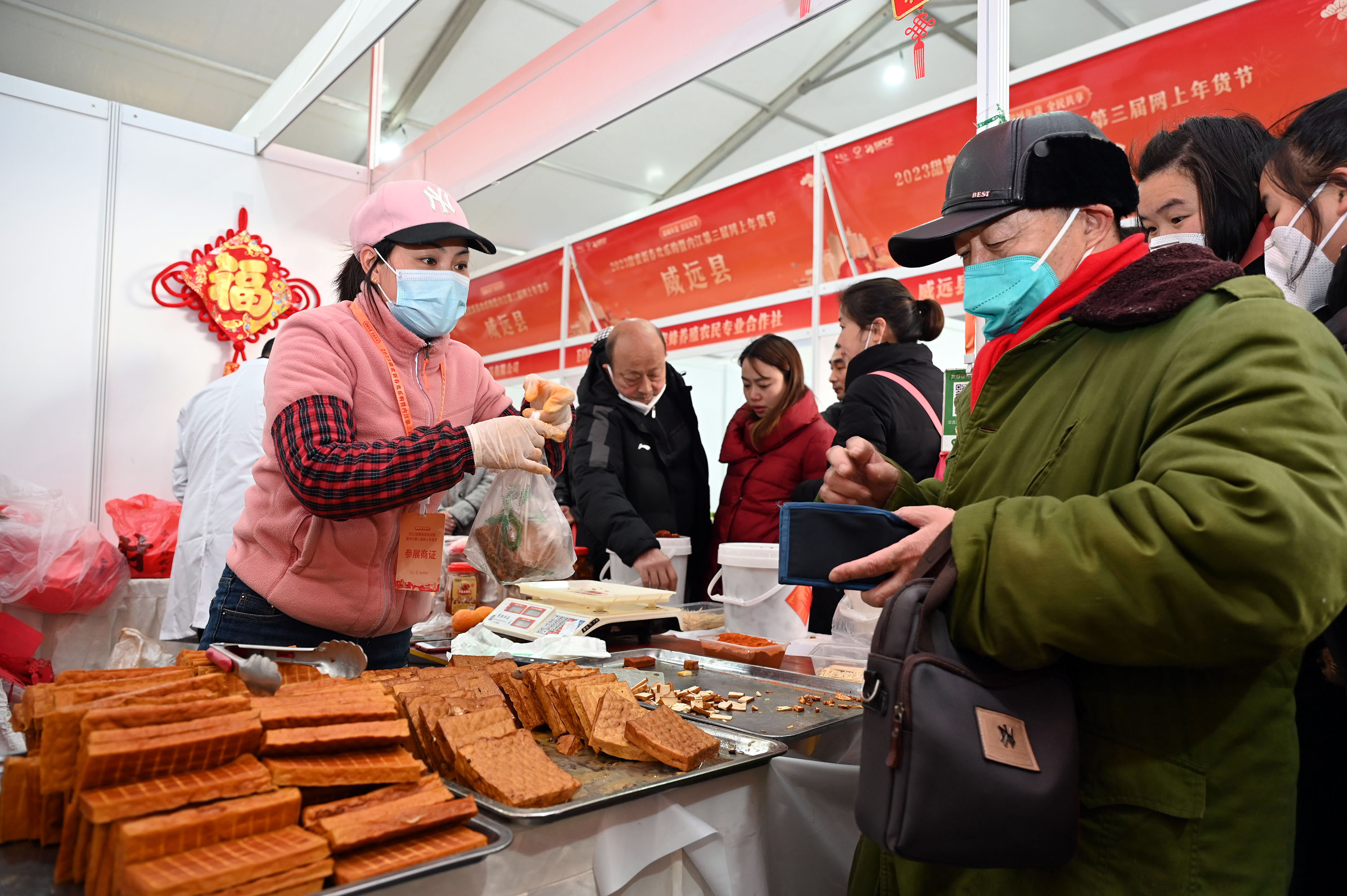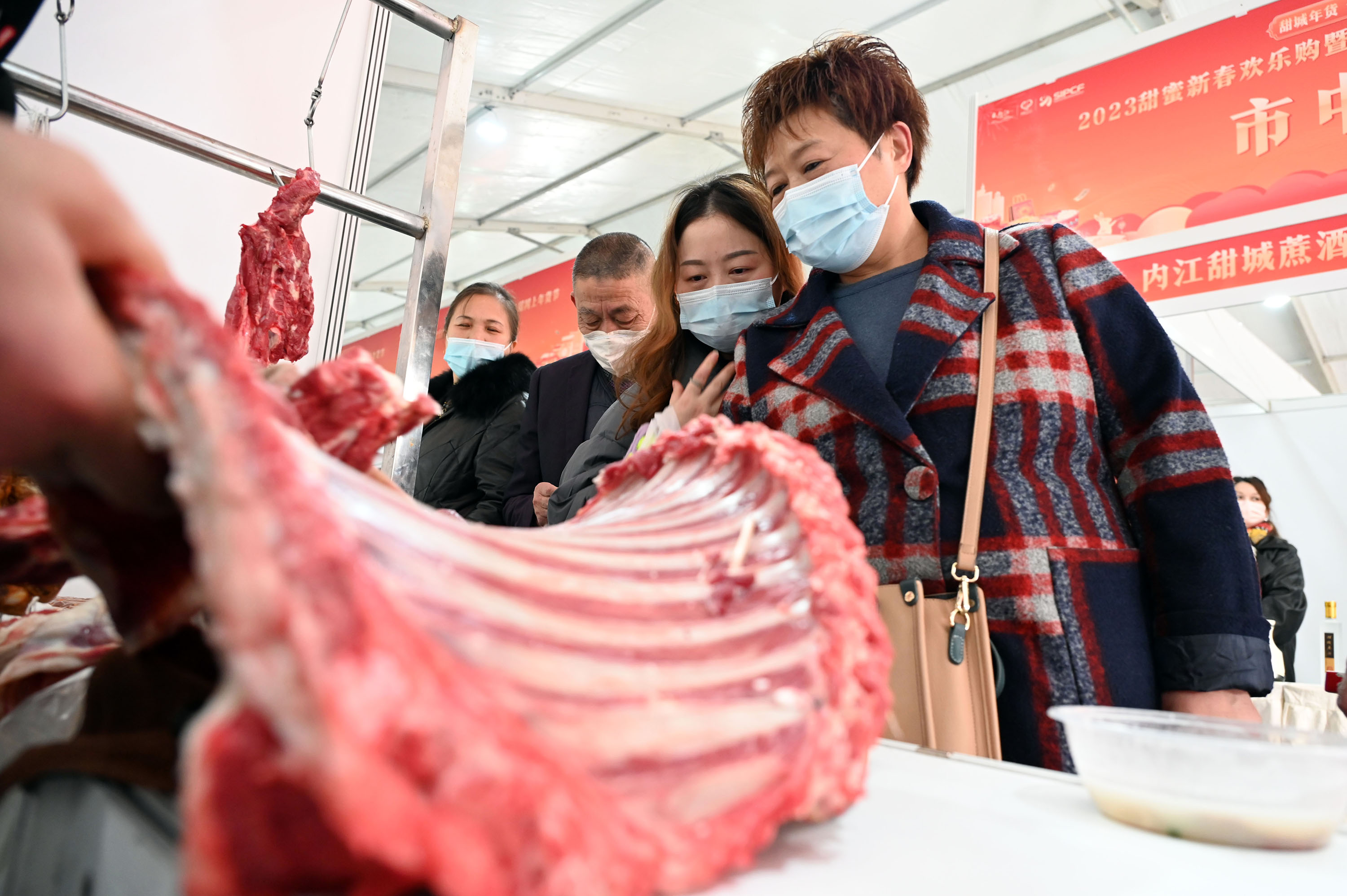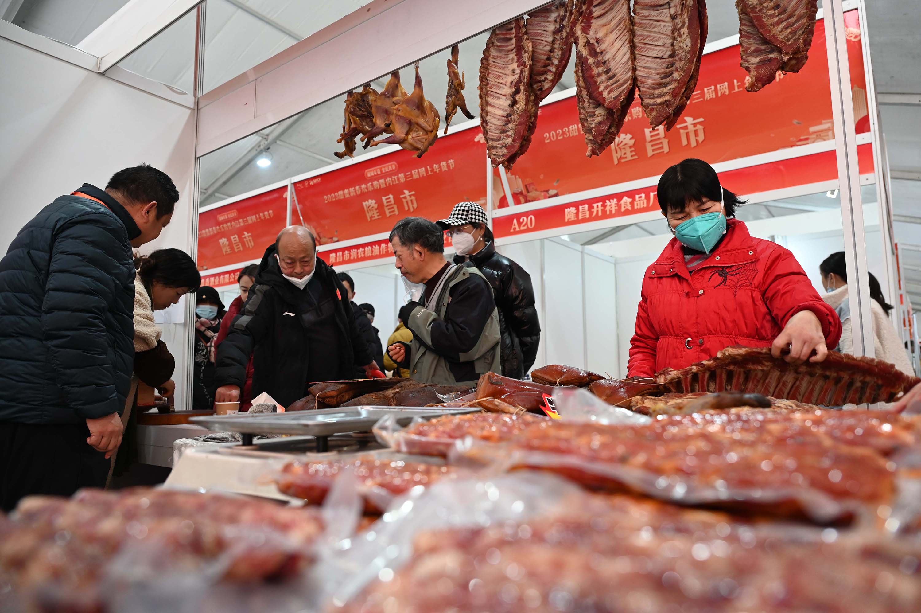 2023年1月7日,消费者在四川省内江市东兴区2023年新春年货节上选购心仪的商品。