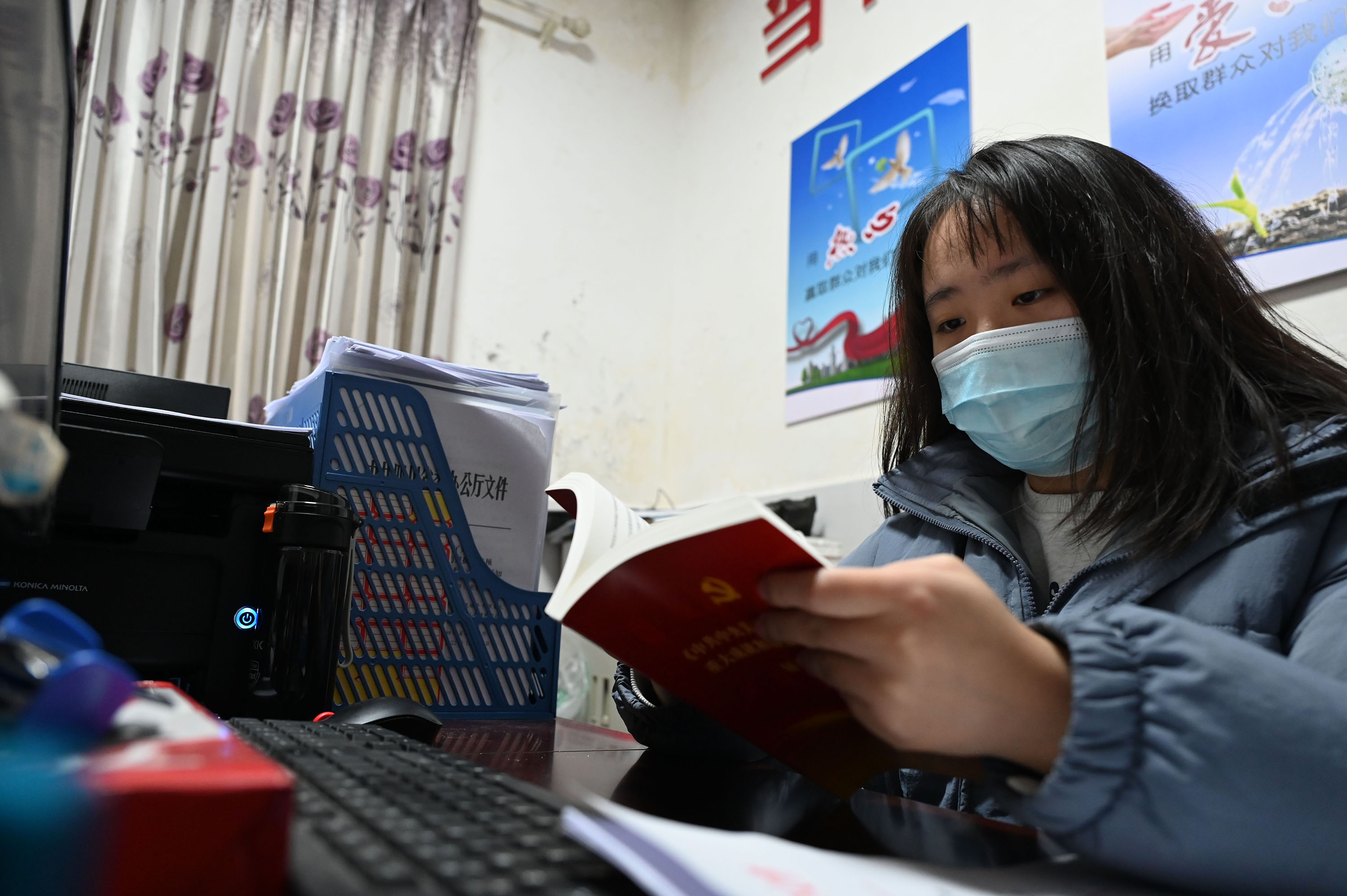 内江市东兴区白合镇党员干部正在认真学习理论书籍