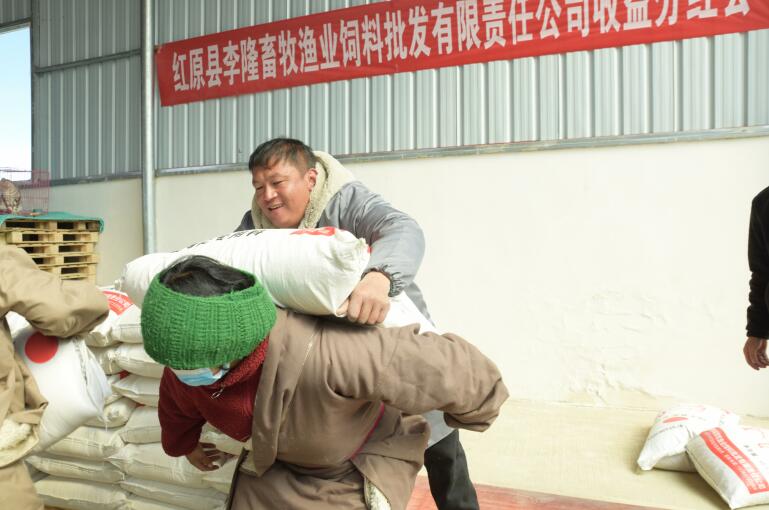 3月18日,红原县李隆畜牧渔业饲料批发有限责任公司开展收益分红大会,现场整齐摆放着一袋袋自主研发的牦牛颗粒饲料。此次分红方式以发放自主研发的牦牛颗粒饲料进行,为邛溪镇各村55户贫困户发放饲料。