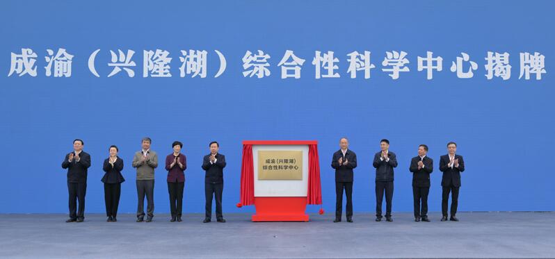 10时25分许,在热烈掌声中,王晓晖、黄强共同为成渝(兴隆湖)综合性科学中心揭牌。随后,王晓晖宣布:成渝(兴隆湖)综合性科学中心重大科技基础设施项目建设集中启动。