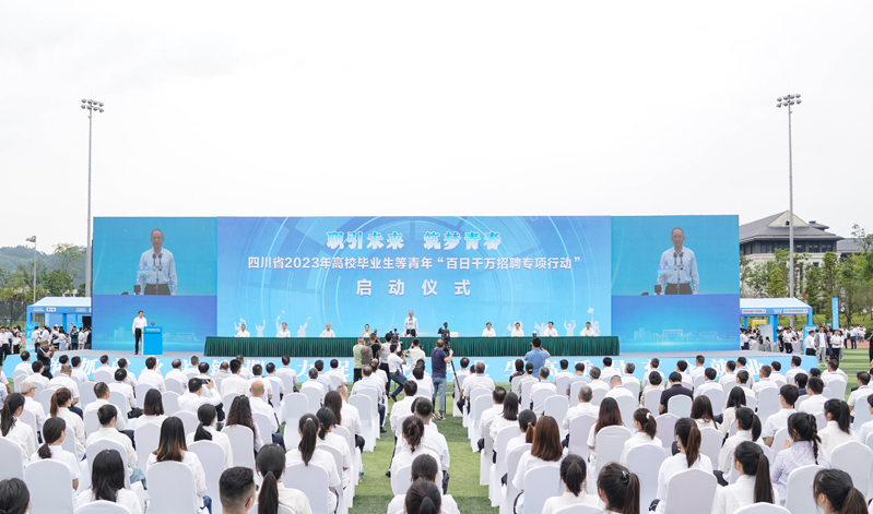 10时35分许,黄强宣布:四川省2023年高校毕业生等青年“百日千万招聘专项行动”启动。