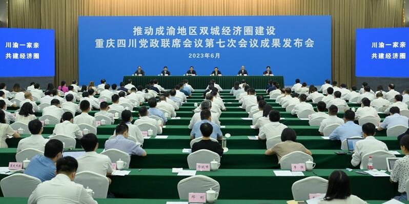6月26日,推动成渝地区双城经济圈建设重庆四川党政联席会议第七次会议成果发布会在重庆市璧山区举行。重庆市委书记袁家军主持并通报会议主要成果及重庆市下一步打算,四川省委书记王晓晖出席并通报四川省下一步打算。重庆市委副书记、市长胡衡华,四川省委副书记、省长黄强分别通报有关情况。国家发展改革委秘书长伍浩出席。