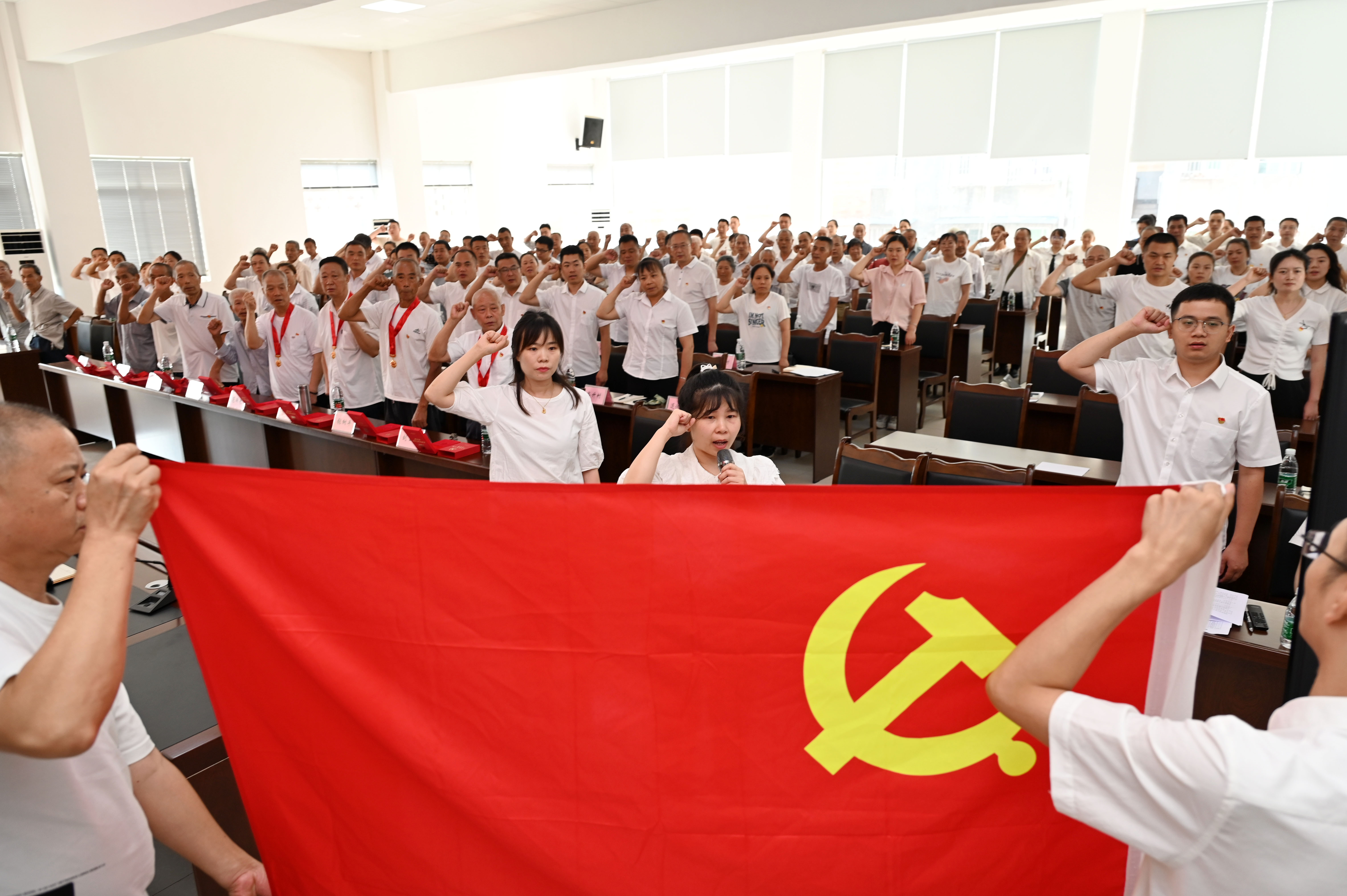 新党员宣誓,老党员重温入党誓词