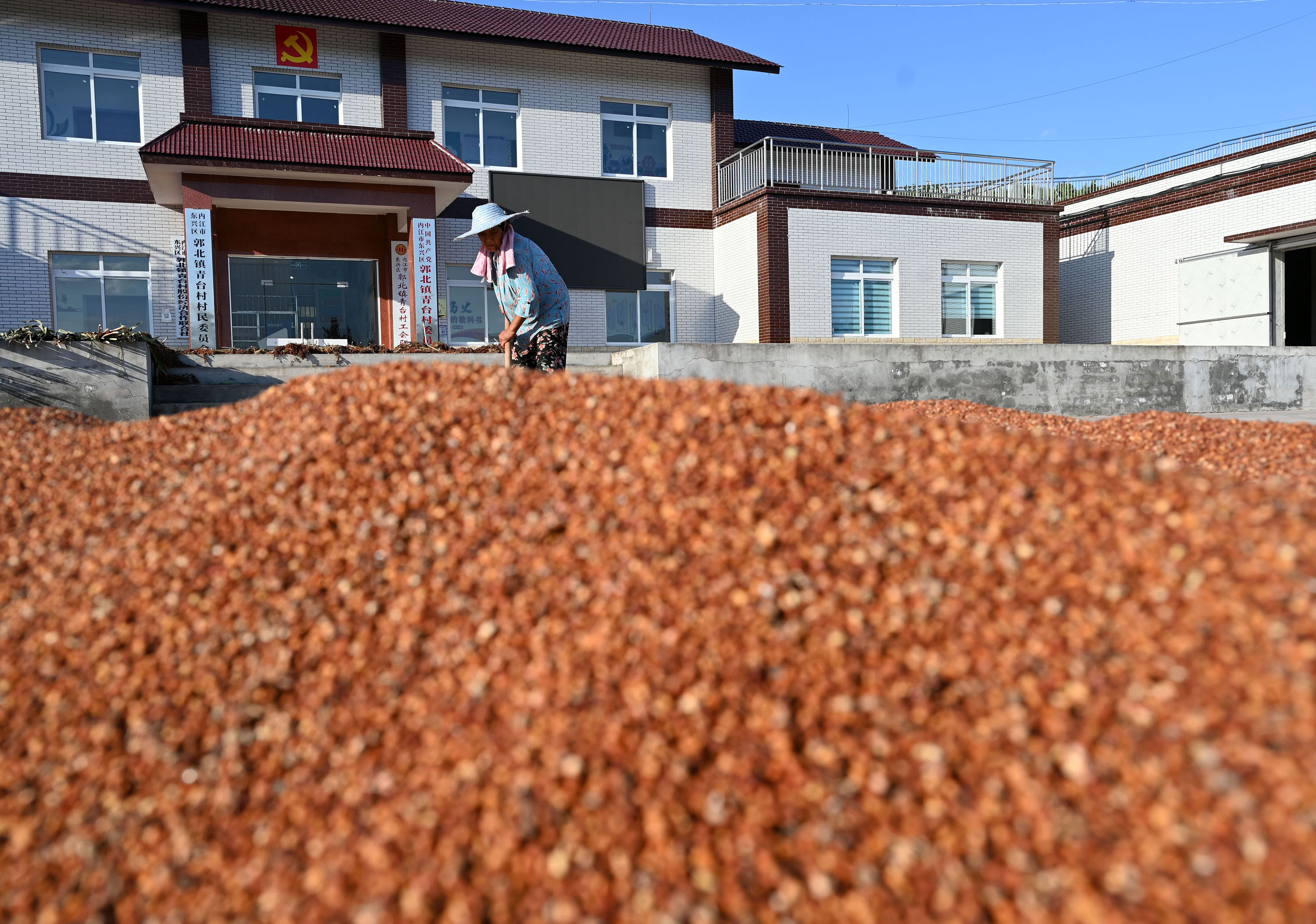 秋收时节,内江市东兴区郭北镇的水稻、高粱等粮食作物陆续成熟待收,当地干部群众抢抓晴好天气,及时收割、脱粒、晾晒,力争颗粒归仓。(文/图 内江市东兴区委宣传部 李建明 编辑/刘晓刚)