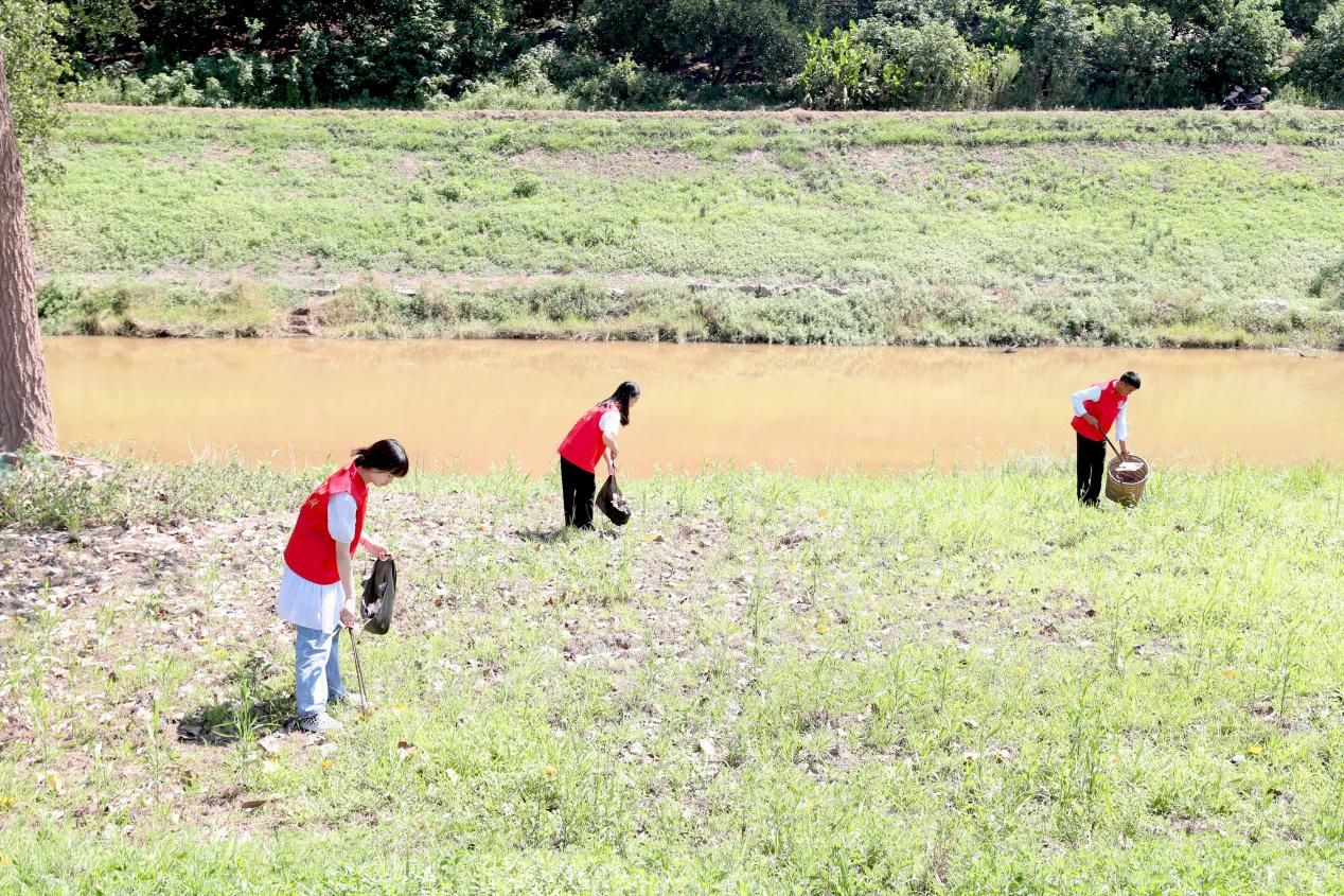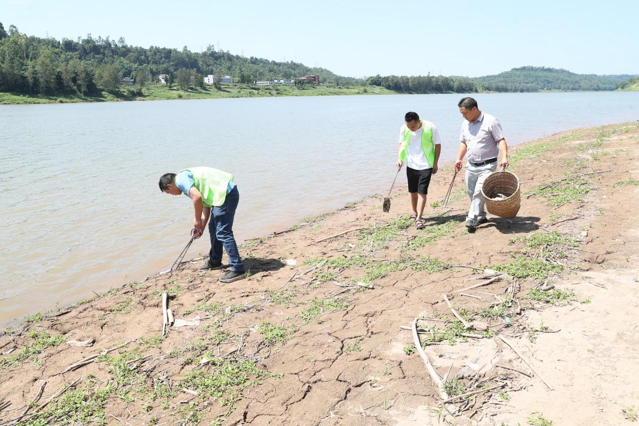 8月14日,四川省广安市广安区大龙镇环保志愿者在渠江边捡拾垃圾,用行动维护水域环境