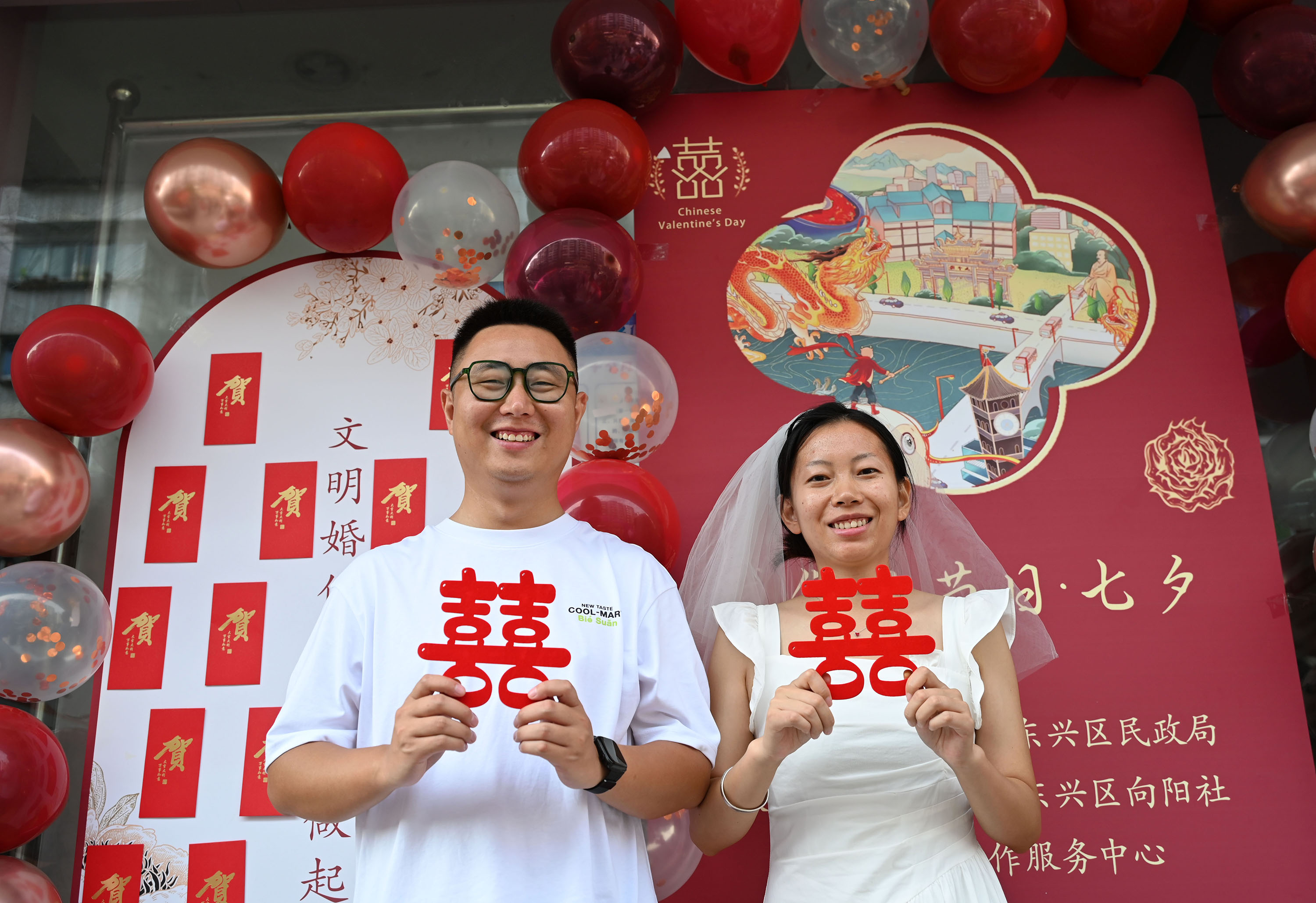 七夕节,又名乞巧节、女儿节,是中国的传统节日。当天,内江市东兴区不少新人选择在这个具有特别意义的日子登记结婚,并参加浪漫的集体婚礼,以此传承中华传统文化,倡导文明新风。