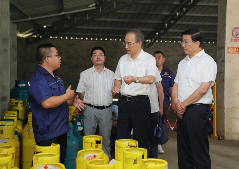 9月5日,省委副书记、省长黄强在彭州市隆丰街道液化气配送中心察看了解罐装液化气储存配送情况。