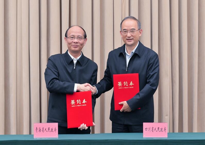 座谈会上,黄强、吴晓军分别代表双方签署《青海省人民政府四川省人民政府战略合作框架协议》。