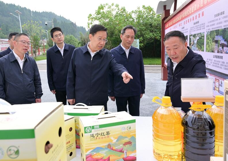 11月3日,省委书记王晓晖到蓬溪县宝梵镇宝梵村调研,观看农特产品展示,了解产品生产销售、品牌打造、市场推广等情况。