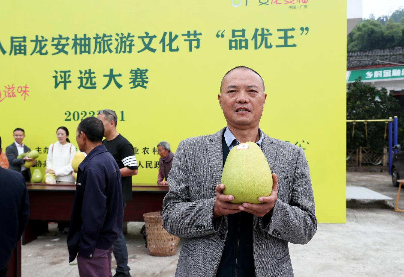 11月3日上午,2023年第八届四川广安龙安柚旅游文化节“品优王”评选大赛活动在四川省广安市广安区龙安乡群策村党群服务活动中心举行。曾经当过三届广安区政协委员的龙安乡群策村柚农胡兆华选送的柚果获得了本届龙安柚旅游文化节“品优王”评选大赛一等奖,广安区政协常委、柚农唐华选送的柚果获得二等奖。