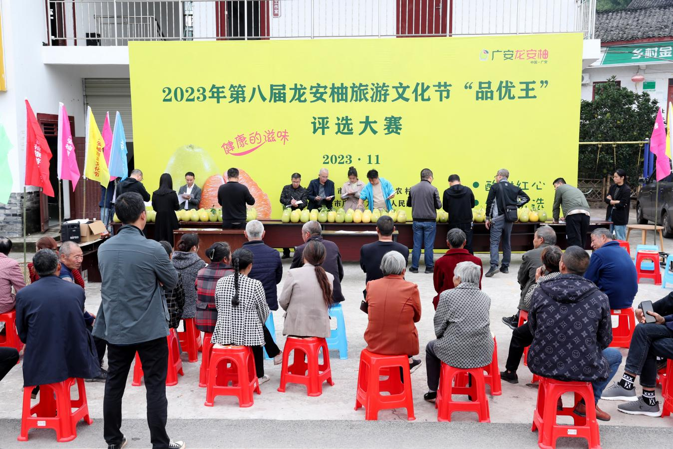 广安区现代农业产业园区服务中心副主任江学友介绍,第八届龙安柚旅游文化节的“品优王”评选活动,一共有43户农户参加。举办活动的目的就是选出“柚王”,激励老百姓标准化的管护,为龙安柚产业擦亮金字招牌助力,助力乡村振兴产业发展。