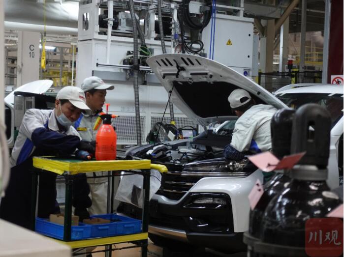 2月11日,宜宾三江新区凯翼汽车生产总装车间,工人对汽车进行组装。 罗顺 摄