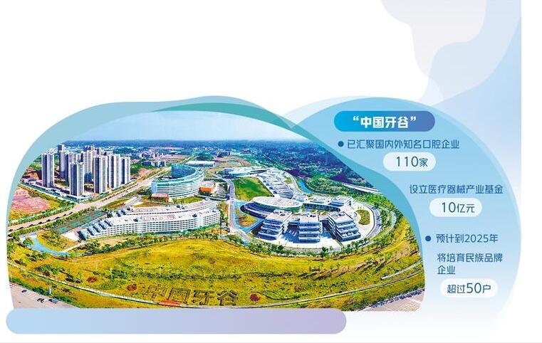 在“中国牙谷”生产的不少产品包装上,都印着“牙谷 Dental Valley”的字样,这标志着“中国牙谷”已经成为四川乃至全国重要的口腔产业地标。预计到2025年,将培育民族品牌企业超过50家,上市公司3家以上,实现产值超100亿元。