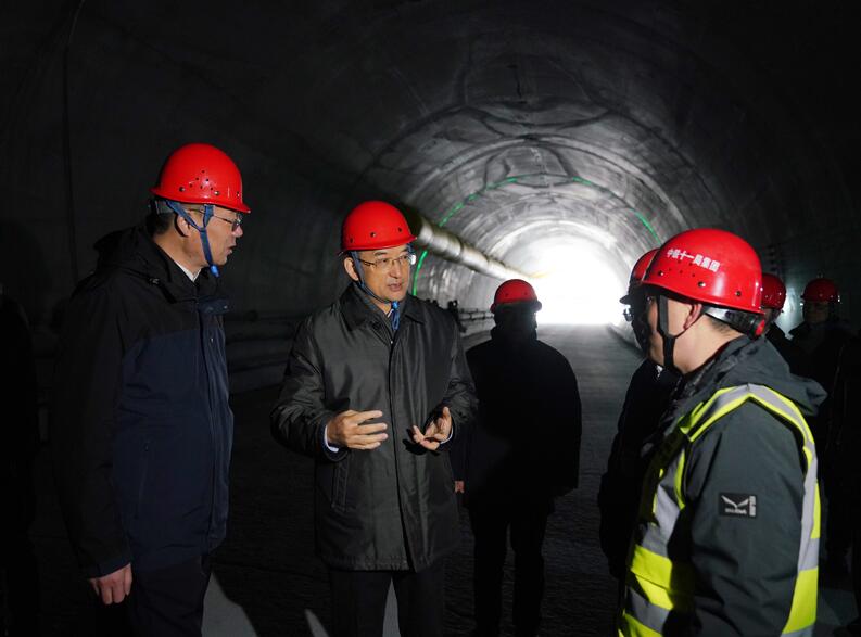 12月26日,在国道351线夹金山隧道工程项目施工现场,省委副书记、省长黄强仔细察看询问施工进展、工程难点和进度计划。