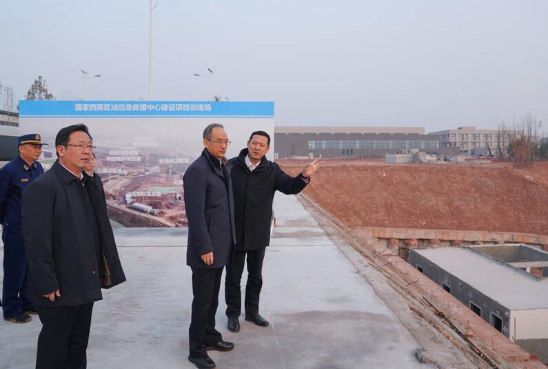 12月29日,省委副书记、省长黄强前往成都市金堂县国家西南区域应急救援中心调研,强调要不折不扣贯彻习近平总书记关于防灾减灾救灾工作的重要指示精神和中央经济工作会议精神,坚持高质量发展和高水平安全良性互动,全力加快项目冲刺收尾工作,确保中心尽早建成投用,充分发挥专业应急救援“尖刀”“拳头”作用,为守护人民群众生命财产安全、护航四川高质量发展贡献力量。