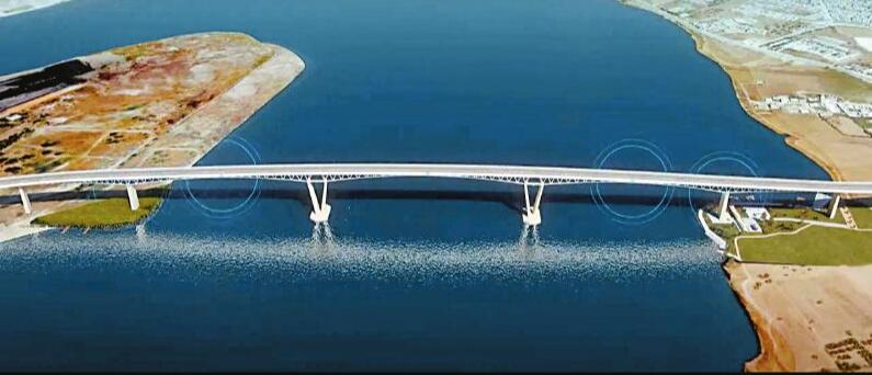 ●大桥为钢桁架叠合梁桥,桥梁总长度2070米,建成后有望成为当地地标