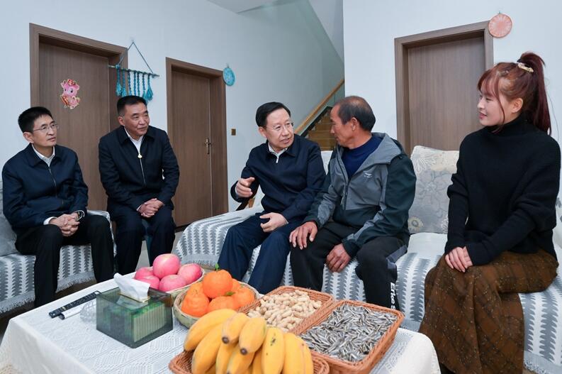1月9日,省委书记、省人大常委会主任王晓晖到凉山州会理市彰冠镇古桥村调研,到农户家中亲切交流,了解家庭收入,生产生活等情况。