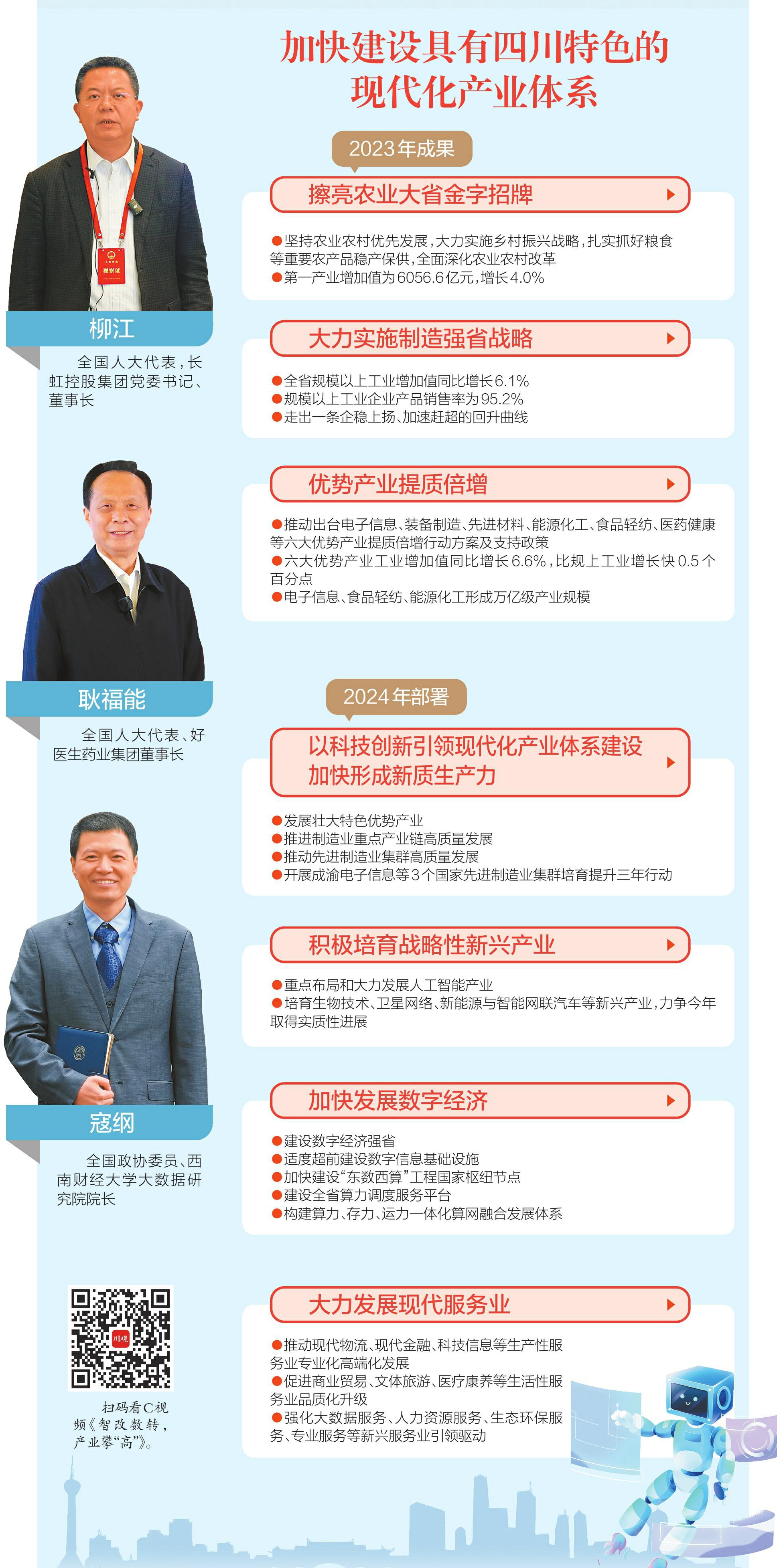 “省委十二届三次全会对深入推进新型工业化、加快建设现代化产业体系作出部署,明晰了‘任务书’和‘施工图’,通过调研发现,这些部署已经转化为实际行动,结出累累硕果。”2月23日,全国人大代表,长虹控股集团党委书记、董事长柳江向记者讲述了此行感受。