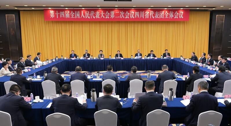 3月4日下午,十四届全国人大二次会议四川代表团在驻地举行全体会议。省委书记、省人大常委会主任、代表团团长王晓晖主持会议。省委副书记、省长、代表团副团长黄强,省委副书记、成都市委书记、代表团副团长施小琳出席。