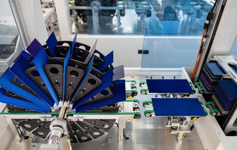 2023年8月22日,位于四川省丹棱县经济开发区的眉山琏升光伏8GW高效异质结电池项目投产,首片高效异质结太阳能电池片正式下线。眉山琏升光伏8GW高效异质结太阳能电池项目,总投资达45亿元,是四川省2023年重点建设项目。新华社记者 江宏景 摄