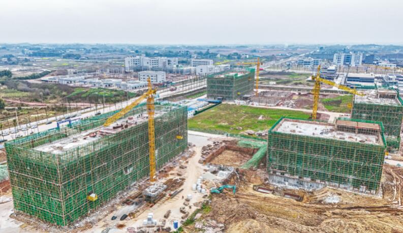 四川广安天兴制药有限公司原料药生产基地项目现场吊塔林立。