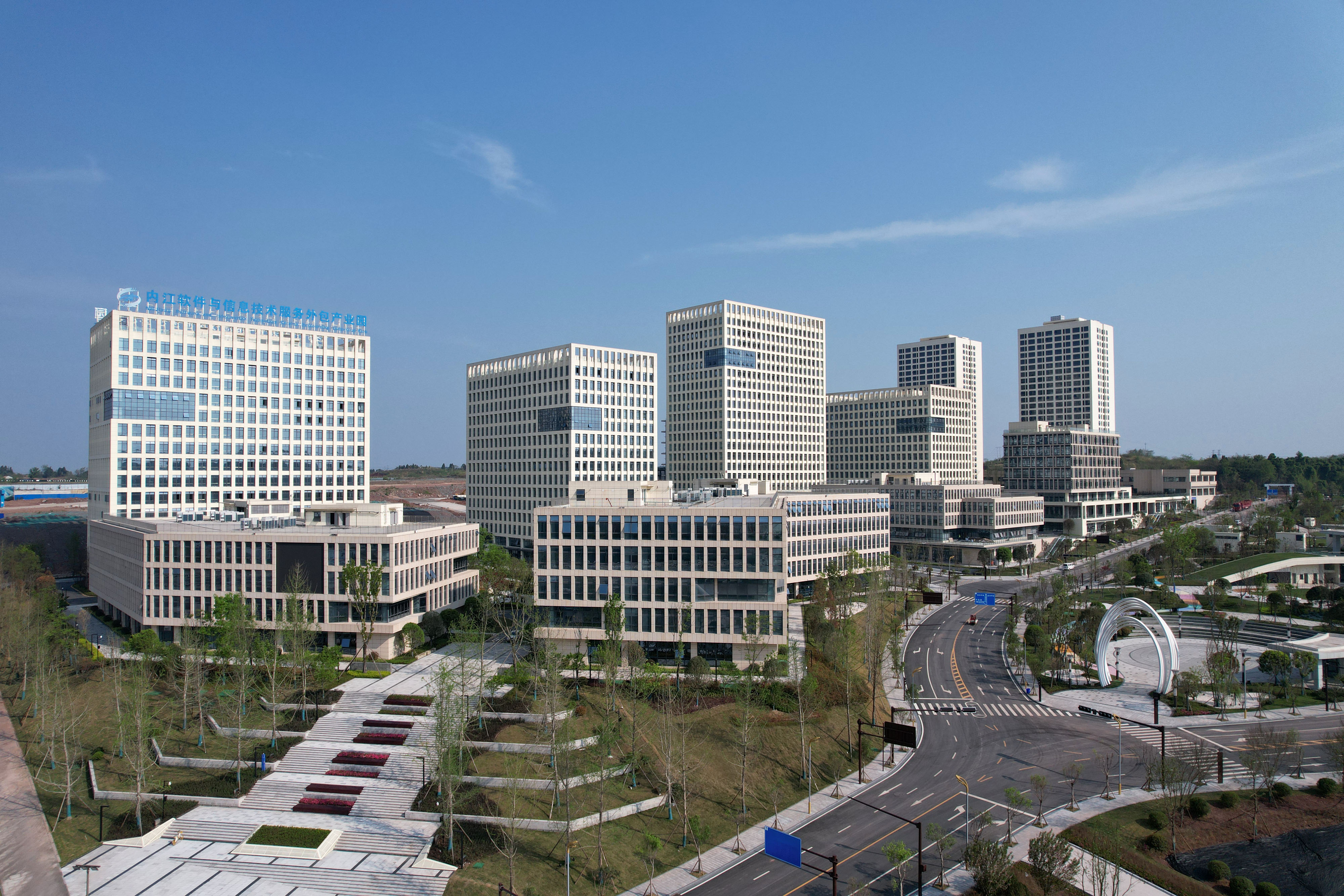 2024年4月1日,从空中俯瞰即将建成投用的四川省内江软件与信息技术服务外包产业园D区(一期)项目。