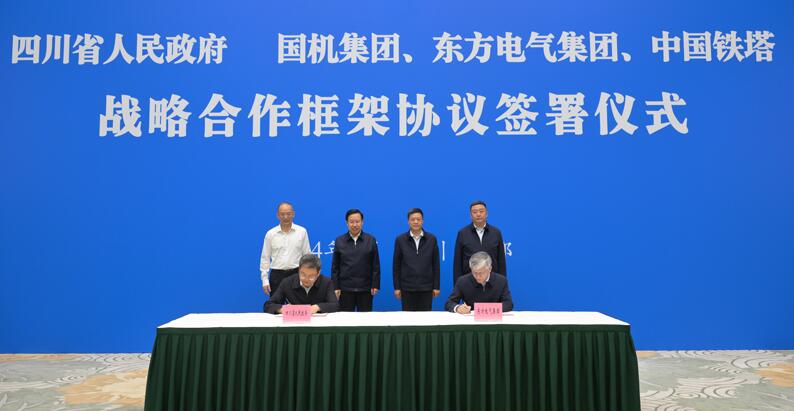 4月15日,四川省人民政府与国机集团、东方电气集团、中国铁塔公司在成都分别签署战略合作框架协议。省委书记、省人大常委会主任王晓晖,省委副书记、省长黄强会见国机集团董事长张晓仑、东方电气集团董事长俞培根和总经理张彦军、中国铁塔公司董事长张志勇,并共同见证相关协议签署。