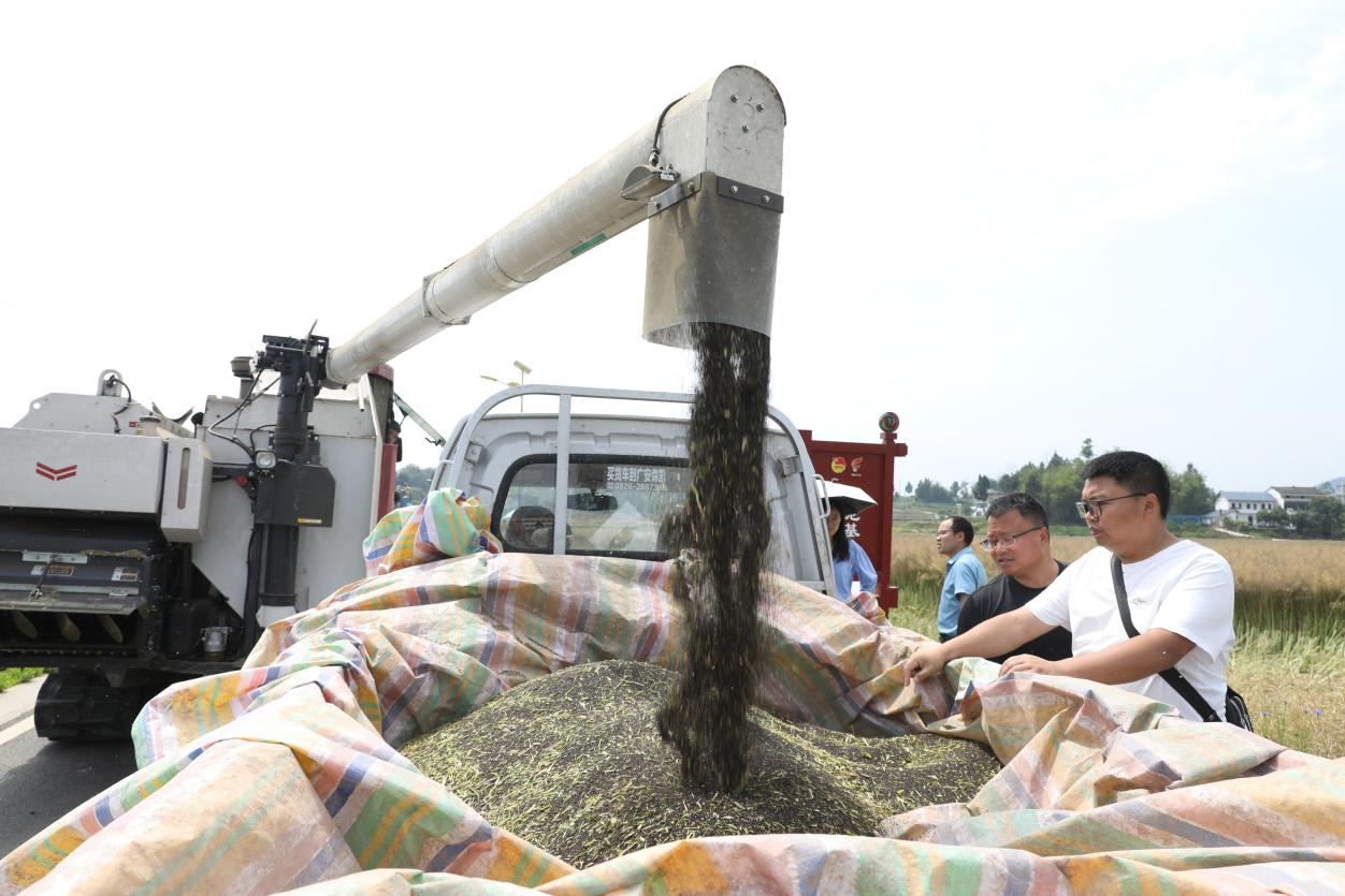 5月6日,广安区油菜千亩高产示范片测产工作在广安区花桥镇冲锋村油菜种植基地举行,正在机收油菜。
