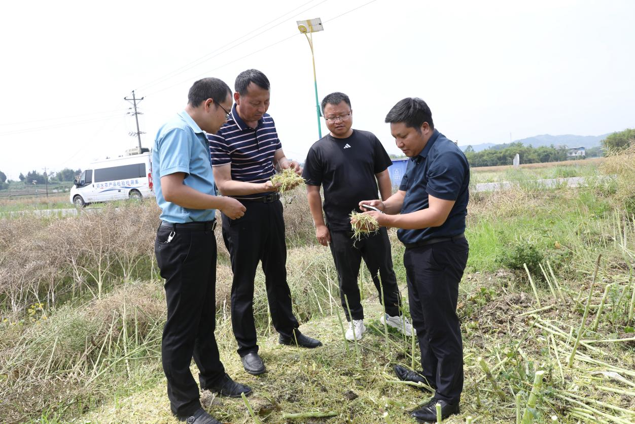 5月6日,广安区油菜千亩高产示范片测产工作在广安区花桥镇举行,相关人员正在现场测产。