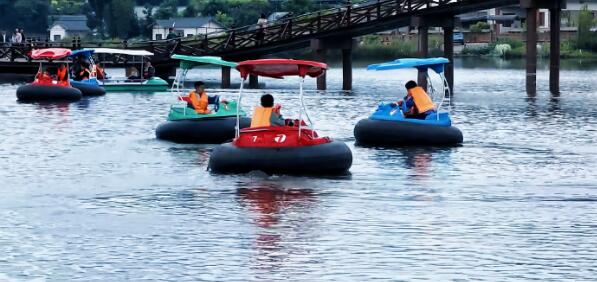 走近大自然,感受田野乐趣,为了让游客沉浸式感受田间野趣,宋井桃源旅游景区策划了草坪音乐会、草坪啤酒龙虾节、水上碰碰船等多个趣味活动。在宋井桃源小桃气区域,新增的“鱼”乐无限游玩项目聚集了众多抓鱼的小朋友,只见孩子们在水里摸鱼、捉虾,一片欢腾。