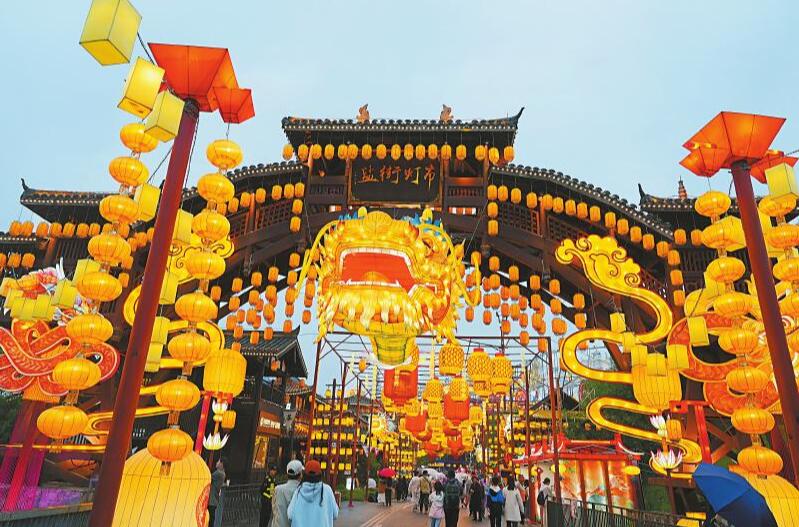 丰富文旅产品供给,自贡首先聚焦龙头项目。如自流井区依托西秦会馆片区、釜溪夜游和自流井老街,集中连片打造釜溪河盐文化长廊核心区。其中,全新升级的“夜游釜溪”项目,通过传统彩灯加现代“声、影、光、电”等新工艺,集游览观光、互动体验为一体。