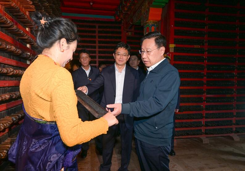 9月4日,省委书记、省人大常委会主任王晓晖到德格印经院调研,了解藏文化典籍保护、藏式刻版印刷工艺传承发展情况。