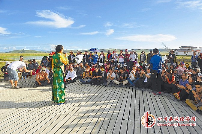 8月14日至15日,中央电视台“心连心”艺术团小分队在红原县安曲乡夺龙村慰问演出,受到当地牧民群众的热烈欢迎。图为“心连心”艺术团团员索朗旺姆为安曲乡牧民群众演唱藏语歌曲《再唱山歌给党听》。