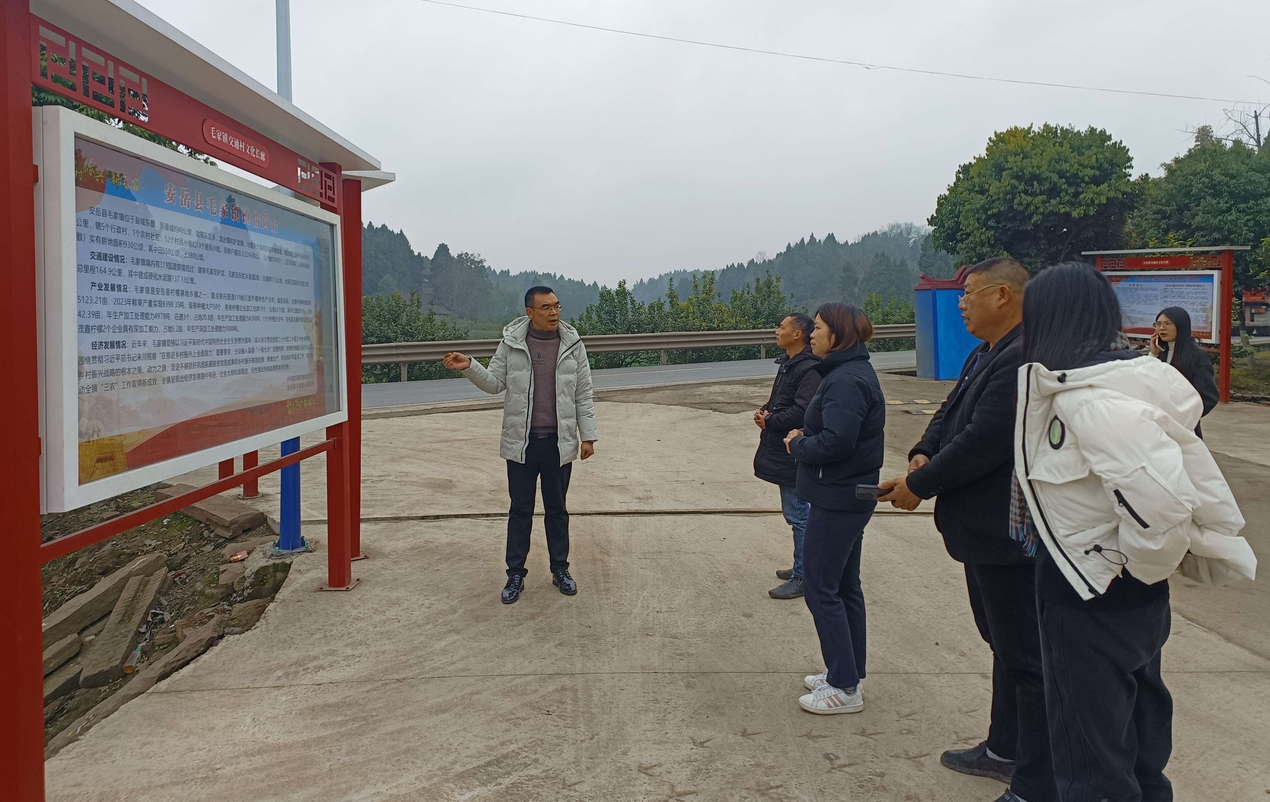 王佐洪向元坝镇众人现场介绍交通村村情长廊 刘芟杉/摄