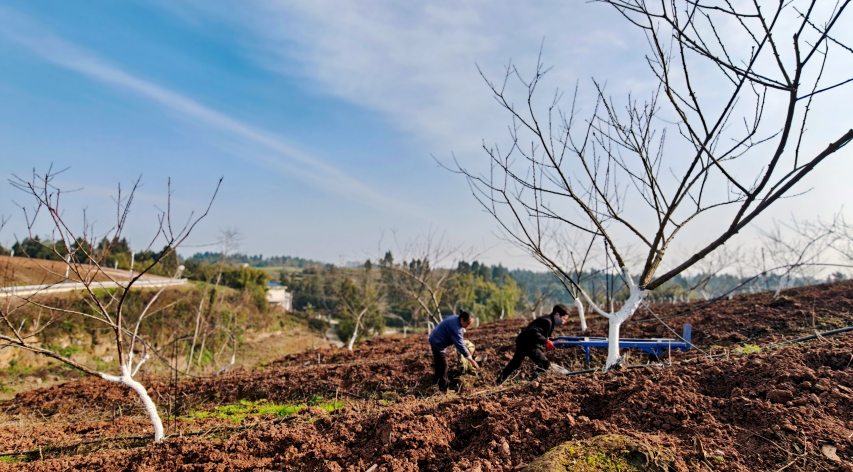 2025年3月10日,记者走进资阳市安岳县兴隆镇种养循环示范园,晨光初绽,田间涌现一派农事忙、产业兴的春耕景象。刚刚进行了挖掘、深翻的土地变得松软,工人们正抢抓农时进行薄荷种植。与此同时,对面山坡的工人们也正为种植的黄精施下开春第一肥。