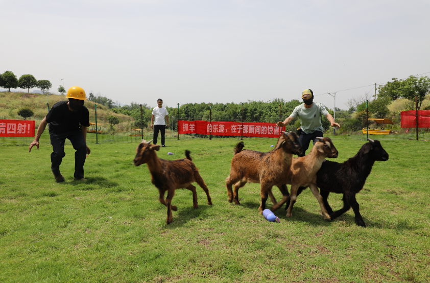 在景区农耕体验区,由立柱和栅栏围成的占地约30余平方米场地内,一场生动有趣的蒙眼抓羊、抓鸭活动正热火朝天地进行,只见游客们以五人为一组,每人头戴眼罩,在盲眼的状态下,凭借敏锐的直觉与灵活的应变能力,与活泼的羊群、鸭群展开一场欢乐的追逐。在围观游客的提示下,大家不断调整方向和步伐,抓取属于自己的“战利品”,现场洋溢着浓郁的欢快气息。活动以二分钟为时限,游客抓取的羊、鸭以及日常生活用品等均归本人所有。
