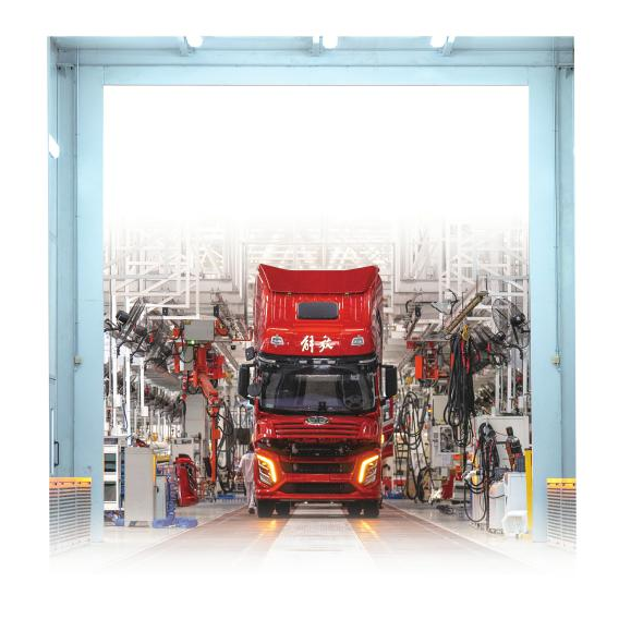 4月22日,一汽解放四川分公司生产车间内,一辆装配完成的卡车正准备下线。 四川日报全媒体记者 李强 摄