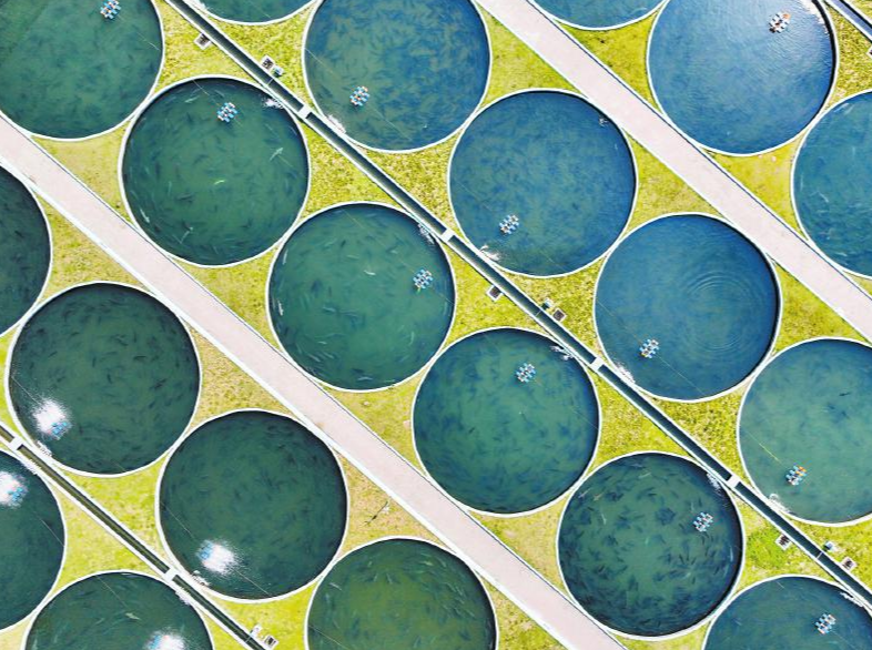 雅安鲟鱼池里饲养的鲟鱼,可产鱼子酱。